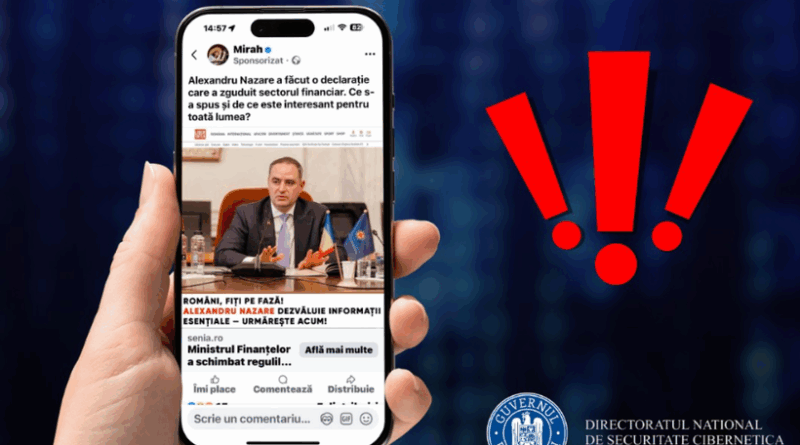 „AVERTIZARE – Continuă campaniile frauduloase care promovează o aşa-zisă platformă de investiţii de stat, asociată în mod fals cu imaginea Ministerului Finanţelor. Aceste mesaje, care promit randamente nerealiste de până la 150%, reprezintă tentative de înşelăciune şi nu sunt asociate cu vreo iniţiativă guvernamentală reală”, au transmis, luni, specialiştii DNSC, într-un mesaj pe Facebook.