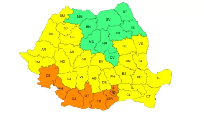 Un alt cod galben emis de ANM vizează, vineri, Crișana, nordul Banatului și al Olteniei, nordul și estul Munteniei, jumătatea de sud a Moldovei, Dobrogea, precum și vestul și sudul Transilvaniei.