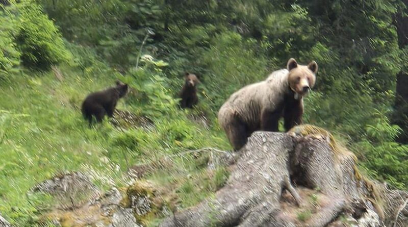 Jandarmii prahoveni au intervenit în sprijinul unei familii din Letonia care, în timp ce afla în vacanţă pe Valea Prahovei, a întâlnit pe o potecă o ursoaică cu doi pui.