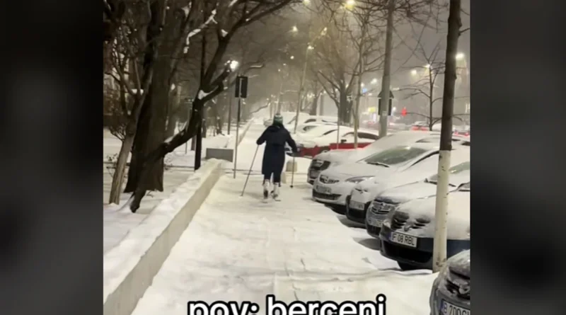 În clipul de pe platforma amintită, postat duminică seara de @marioxtzz, se vede o femeie care schiază pe un trotuar. Potrivit autorului postării, imaginile au fost surprinse în cartierul Berceni din București.