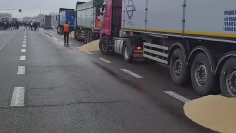 Pe reţelele sociale au circulat fotografii şi înregistrări video în care se vede cum agricultorii din Polonia, care au blocat vineri mai multe puncte de trecere a frontierei cu Ucraina, au golit pe şosea încărcătura din mai multe camioane ucrainene, pentru a protesta împotriva concurenţei pe care o consideră neloială.