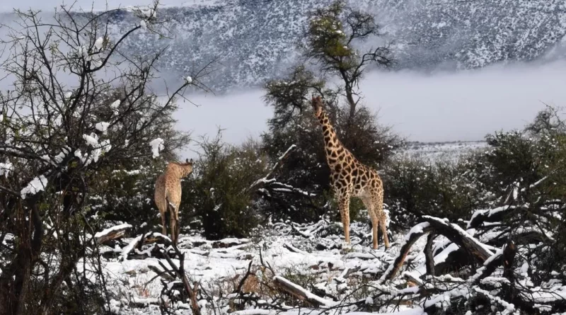 Girafe în zăpadă: Ninge ca-n povești în Africa de Sud