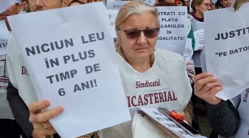 Sindicatul Naţional al Grefei Judiciare „Dicasterial” anunţă că, începând cu data de 11 decembrie 2023, pe perioadă nedeterminată de timp, personalul auxiliar de specialitate şi conex din instanţe şi parchete va adopta următoarele forme de protest: