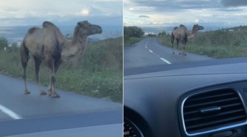 Un șofer din Cluj-Napoca a avut o întâlnire inedită pe un drum care leagă municipiul de comuna Feleacu. O cămilă se plimba agale pe mijlocul șoselei.