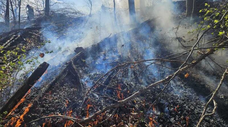 Incendiul de vegetaţie uscată şi litieră a izbucnt în zona pădurii pe raza comunei clujene Mărişel, focul fiind anunţat duminică, în jurul orei 10.30.