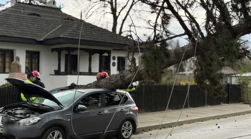 Intervenţie a pompierilor în Botoşani, după ce un copac şi doi stâlpi de electricitate au căzut peste o maşină şi au blocat o stradă/ Meteorologii au emis cod portocaliu de vânt pentru o parte a judeţului, până la ora 18.00