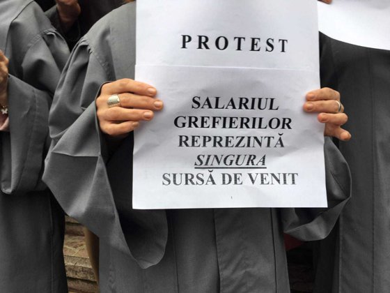 Grefierii protestează faţă de „neplata integrală a salariilor şi a altor drepturi de natură salarială, precum şi faţă de lipsa resurselor materiale necesare funcţionării, în condiţii normale, a activităţii instanţelor judecătoreşti”.