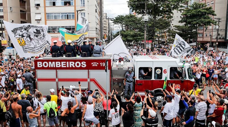 Oraşul Santos a fost „paralizat” marţi, magazinele fiind închise, deoarece toată lumea era pe străzi în aşteptarea trecerii cortegiului funerar.