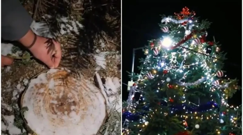 „Am văzut că e tăiat exact de jos, iar când am ajuns în centru ni s-a părut identic. Circumferința se potrivea, îl recunoșteam cumva”, a declarat Mihai Dumitrașcu, precizând că anul trecut primăria folosise, de asemenea, un brad tăiat dintr-o proprietate publică.