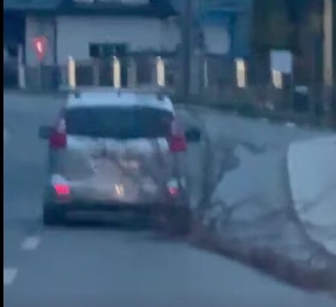 Primarul din Bistriţa, distribuind imagini cu un autoturism care târăşte pe carosabil un trunchi de copac, lung de 16 metri: Sfidează orice urmă de responsabilitate. Un pericol uriaş pentru oricine s-ar fi putut afla pe trotuar sau în apropiere