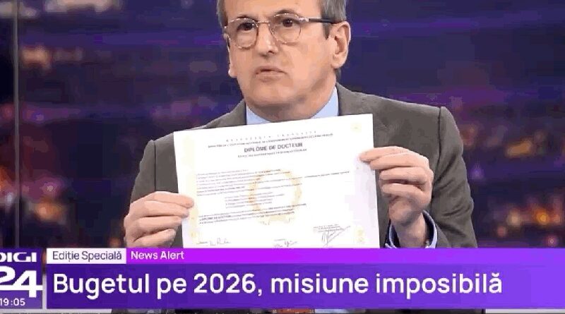 Cristian Preda și-a rupt, în direct, la Digi24, diploma de doctor obținută în Franța, în semn de protest față de intenția guvernului Bolojan de a reduce cu aproape jumătate sporul care se acordă bugetarilor care au și titlul de doctor și care activează în domeniul în care și-au dat doctoratul.