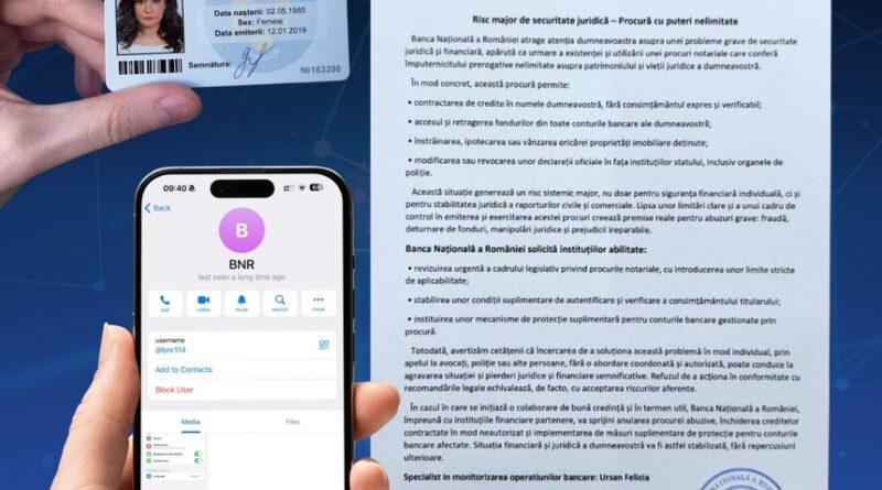„Un nou tip de fraudă a fost raportat în luna aprilie 2025, implicând apeluri telefonice care pretind a fi din partea Poliţiei Române şi a Băncii Naţionale a României (BNR). Infractorii folosesc metode sofisticate pentru a manipula victimele şi a obţine date bancare confidenţiale”, a transmis, marţi, DNSC.
