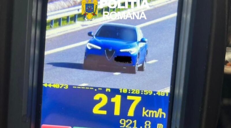 Un şofer a fost înregistrat de aparatul radar când circula cu o viteză de 217 kilometri pe oră pe DEX 12, în judeţul Olt. El depăşise viteza legală admisă pe acel sector de drum cu 97 de kilometri pe oră. Bărbatul a rămas fără permis pentru 120 de zile şi a primit o amendă de 1.800 de lei.