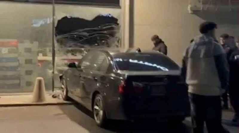 Un şofer care făcea drifturi într-o parcare din Lugoj a intrat cu maşina în vitrina unui magazin